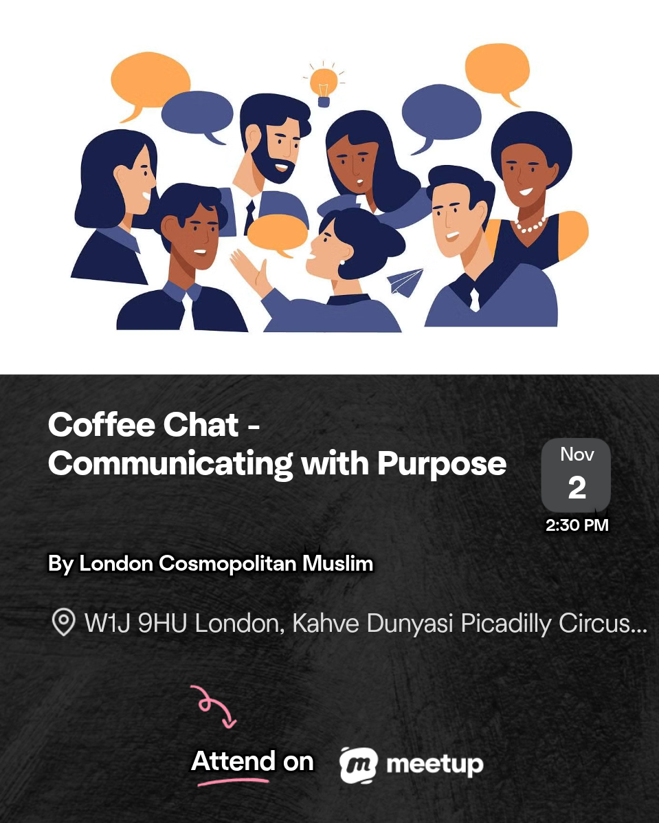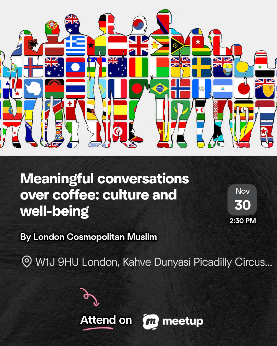 I occasionally organise events around well-being and mental health on Meetup, from the London Cosmopolitan Muslim group.
